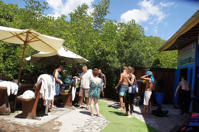 さあ、そろそろレンボンガンウォータースポーツに帰りましょう。シュノーケリングが終わって、ビュッフェランチを食べているお客さんの様子を取材しに戻ります。